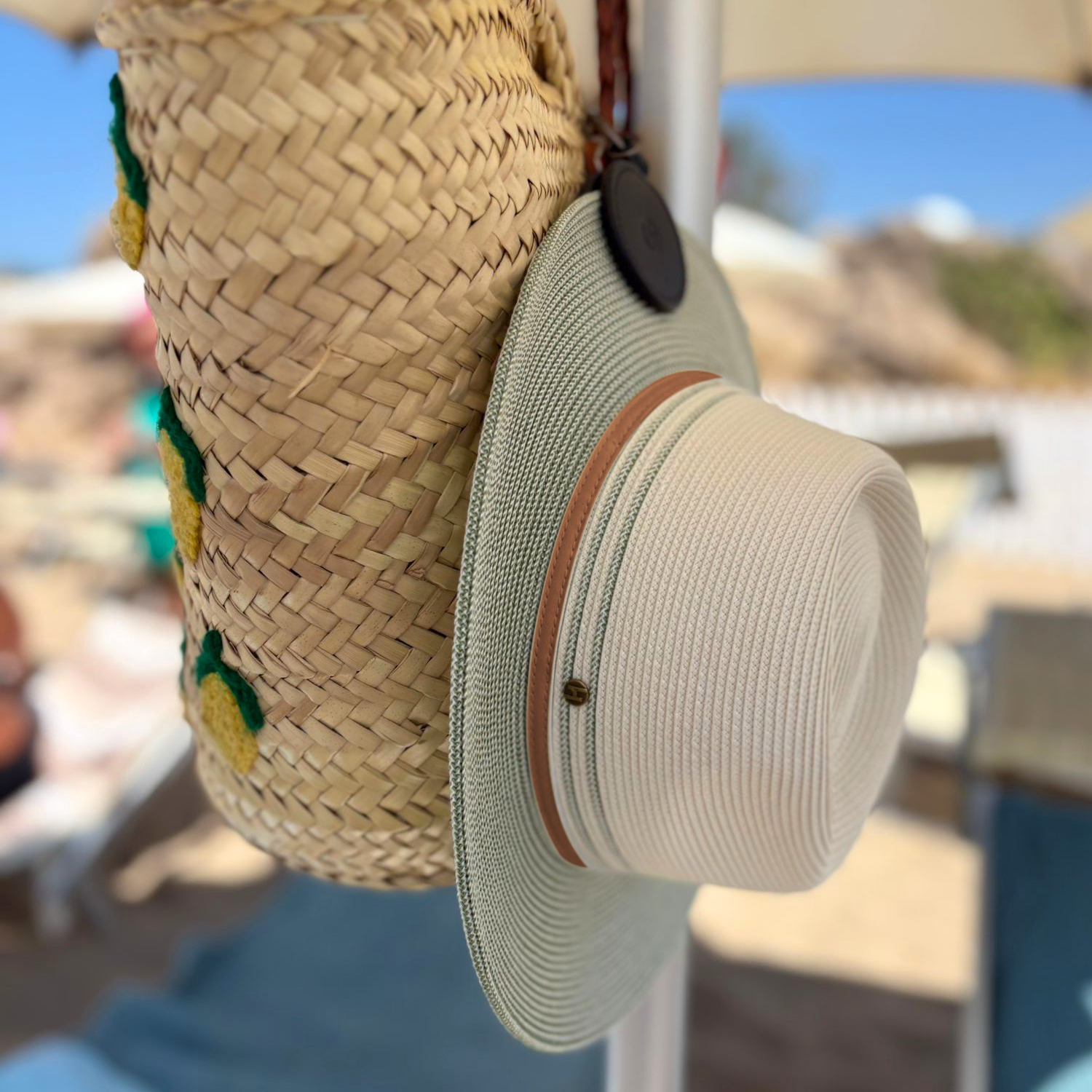 EMTHUNZINI HAT TRAVEL CLIP - CARRY THE SHADE WITH YOU! Keep your stylish hats secure with our original travel hat clip. Easy to use and great gift idea for keeping your sun hat close by all day long. Just clip it on your bag, then place the brim edge of the hat inside the round clip, close the clip to secure the magnet.